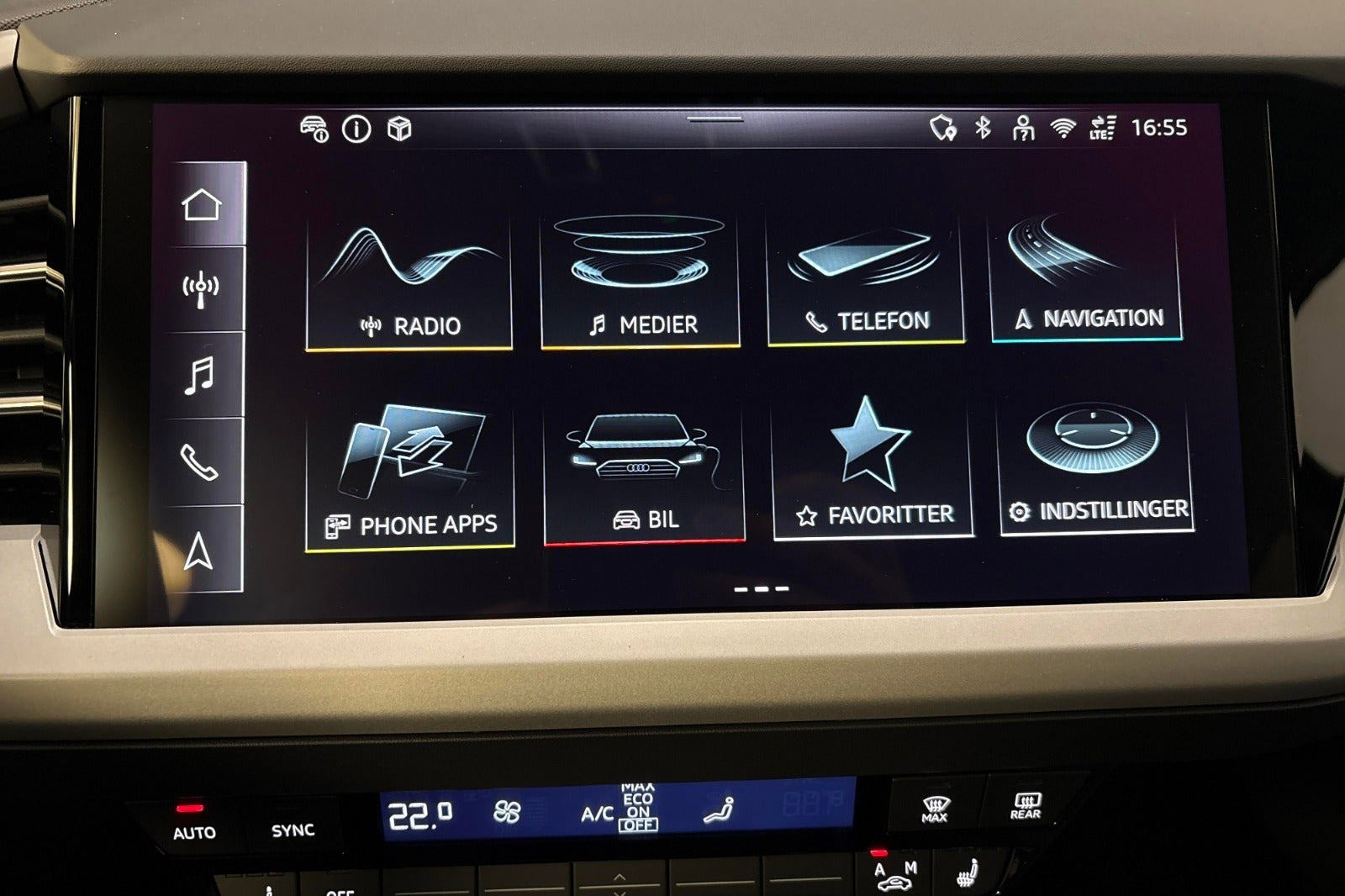 * Komfortnøgle * Forreste dørruder med akustisk glas * MMI Navigation plus & Audi virtual cockpit * Audi sound system * Varmepumpe * LED forlygter og baglygter * Undvigeassistent og drejeassistent * Komfortparkeringsklimafunktion * Klimaanlæg automatisk * Vognbaneafvigelsesadvarsel * Sædevarme foran * Audi pre sense front * Audi sound system * Børnesikring, elektrisk betjent * Børnesædefastgørelse i-Size i passagersiden og i-Size og * Top Tether på de yderste bagsædepladser * Dekorindlæg i sort eksklusiv lak * Digital radiomodtagelse * Multifunktionssportslæderrat flad top og bund og skiftekontakter * Forsæder med højdeindstilling * Højglanspakke blanke rudelister og Tagræling * Komfortmidterarmlæn foran * Mode-3-ladekabel * Splitbagsæde 40:60